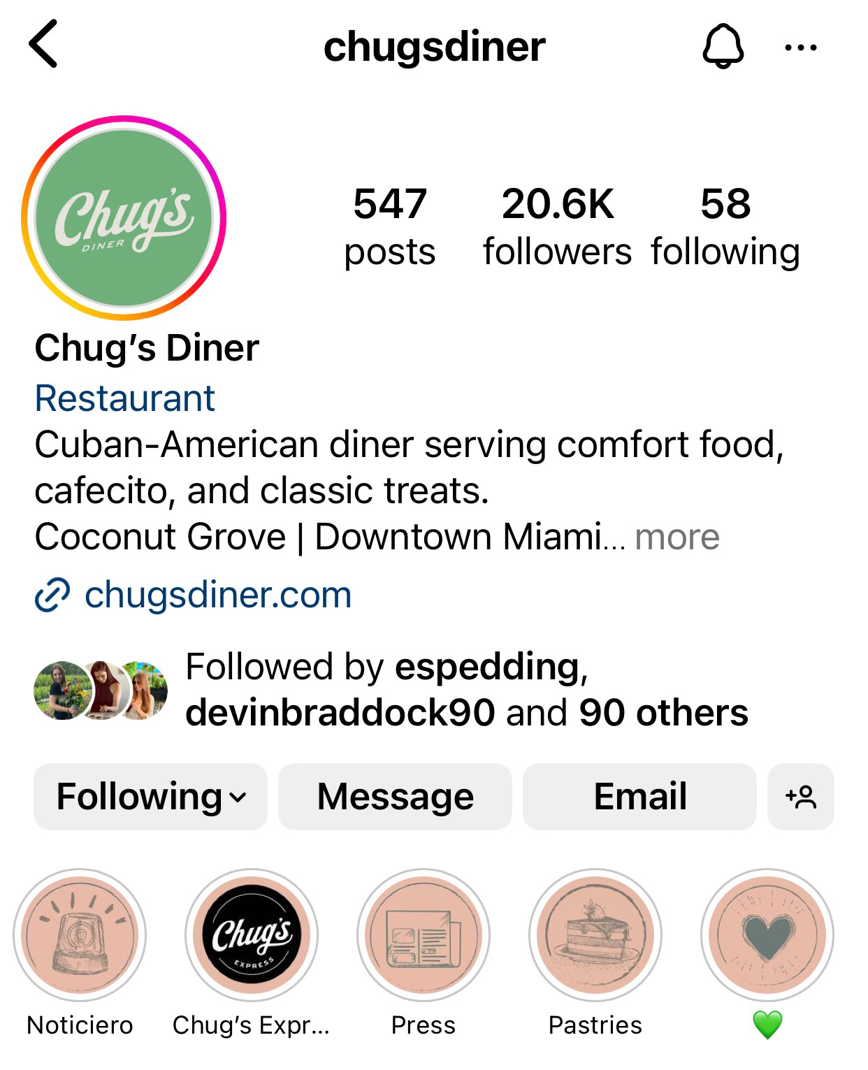 Chug's Cuban Diner is the opposite of Ariete. Cozy, family (and dog) friendly, and welcoming to all, in just a few years since opening Chug’s became a favorite brunch spot of the Coconut Grove community. As a Cuban-American diner the concept is right at home in Miami, serving Cuban coffee and handmade pastelitos alongside the most delicious Cast-Iron pancake and breakfast sandwiches. Branding leans into the retro diner feeling, with warm colors and vintage iconography that also sets the mood for dreamy photography. The marketing strategy of Chug’s is always community oriented, celebrating all the love that goes into the restaurant from chefs to the staff to the guests.