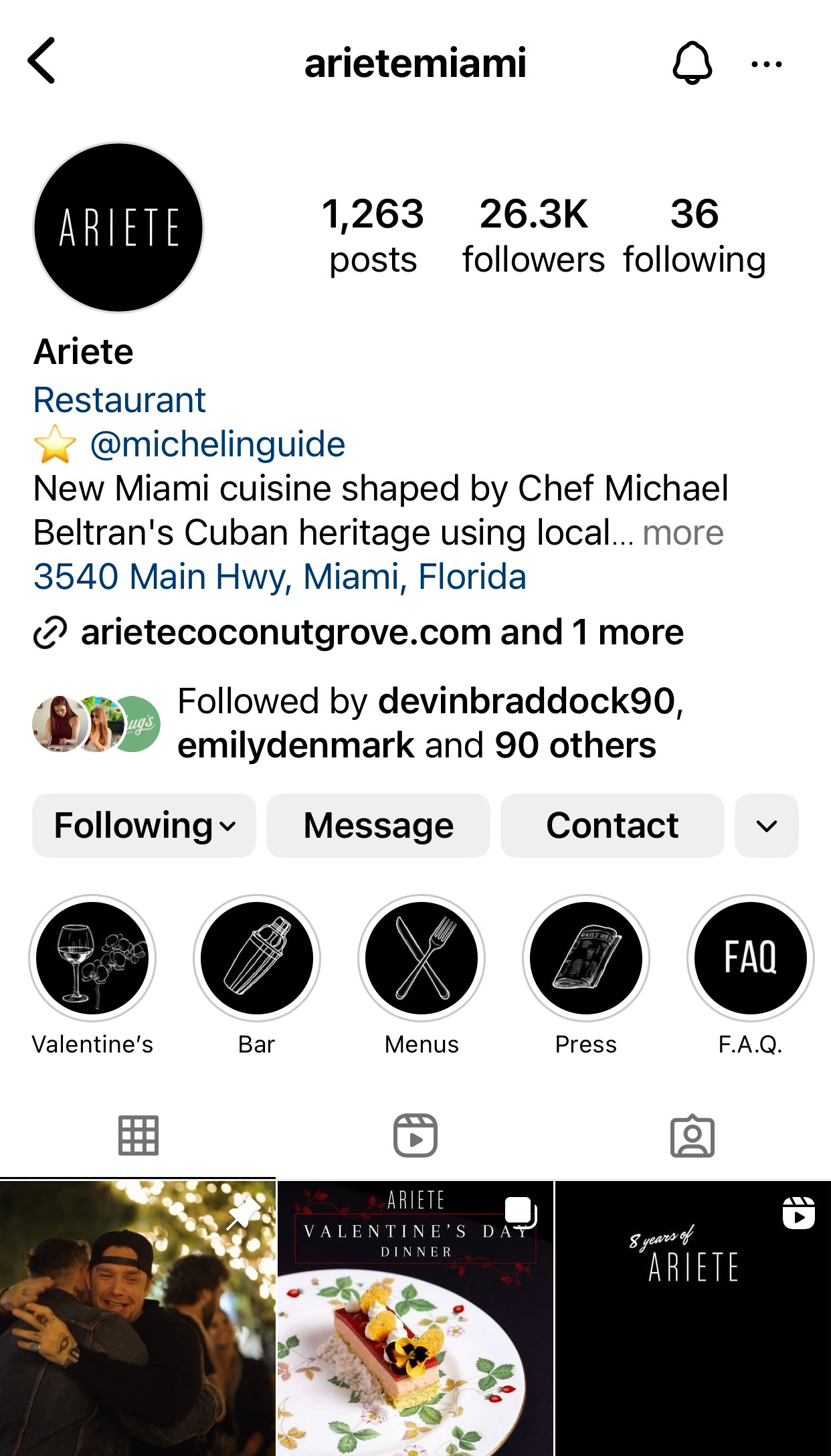 Ariete is the star child of Ariete Hospitality Group. The namesake restaurant was opened in 2016 by Miami native Chef Michael Beltrán, and has gone on to win a Michelin Star in 2022 and 2023.