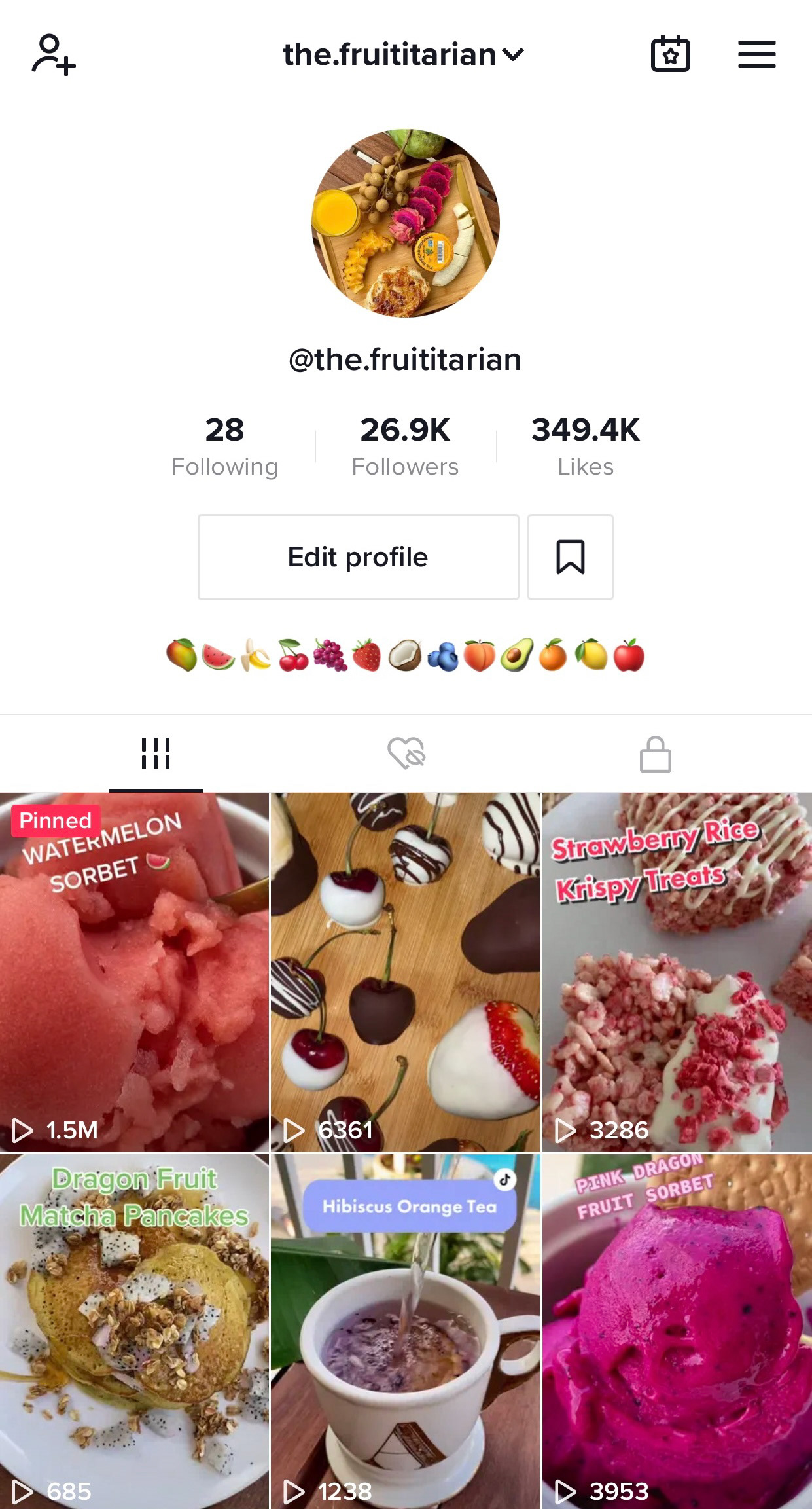 I created this TikTok account for fun to showcase healthy recipes and my love of fruits. In 6 months it grew to 26.9k followers and a top liked video of 1.5M